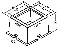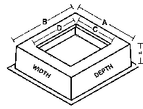 BOX PAD CAT. NO. | TOP SURFACE A B | TOP OPENING C D | HT. H |